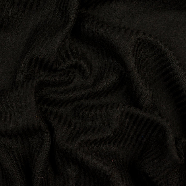 Fekete mintás szintetikus gyapjúszövet, szélesség 150 cm, 100% poliészter