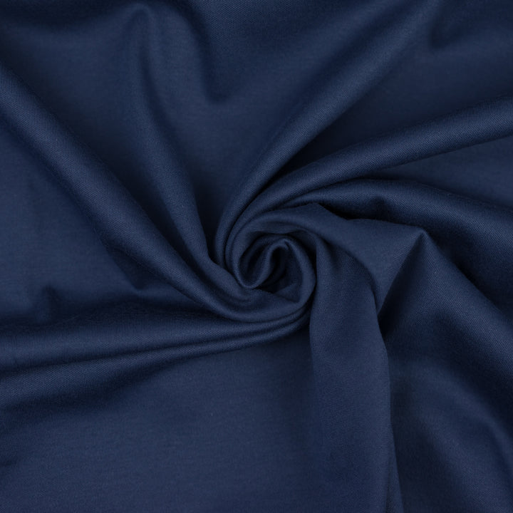 Ez a kék, rugalmas pamutszövet légáteresztő képességéről és kényelméről ismert. Ideális anyag azok számára, akik érzékenyek a szintetikus anyagokra vagy a gyapjúra, mivel kellemes tapintású. Az anyag rugalmassága miatt alkalmas olyan ruhadarabokhoz, amelyek rugalmasságot és kényelmet igényelnek, mint például a leggings, pólók, pulóverek és fehérneműk. A kiváló minőségű pamut puha, könnyen kezelhető és nem bolyhosodik. Magas sűrűségének köszönhetően ez a szövet tartós és időtálló. Bár ellenáll a magas hőmérsékletnek, a zsugorodás elkerülése érdekében 30 °C-on ajánlott mosni.