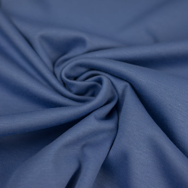 Kék, rugalmas pamutszövet légáteresztő képességéről és kényelméről ismert. Ideális anyag azok számára, akik érzékenyek a szintetikus anyagokra vagy a gyapjúra, mivel kellemes tapintású. Az anyag rugalmassága miatt alkalmas olyan ruhadarabokhoz, amelyek rugalmasságot és kényelmet igényelnek, mint például a leggings, pólók, pulóverek és fehérneműk. A kiváló minőségű pamut puha, könnyen kezelhető és nem bolyhosodik. Magas sűrűségének köszönhetően ez a szövet tartós és időtálló. Bár ellenáll a magas hőmérsékletnek, a zsugorodás elkerülése érdekében 30 °C-on ajánlott mosni.