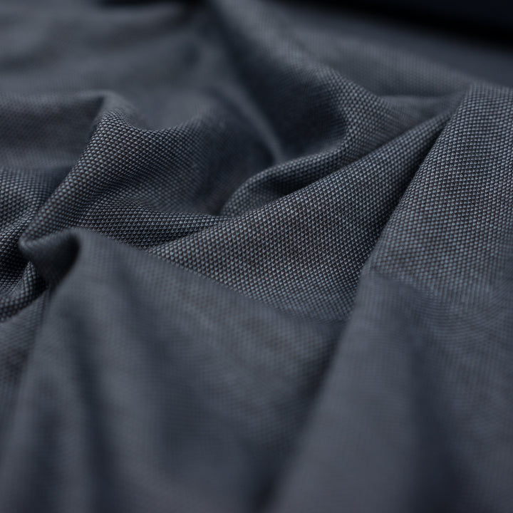 Összetétel: 90% pamut, 10% elasztán. A kékesszürke stretch pique egy sokoldalú és rugalmas szövet, amely főként pamutból áll, és fokozott kényelmet és kiváló légáteresztő képességet biztosít. Az anyag rugalmassága ideális olyan ruhadarabok készítéséhez, amelyeknek szükségük van némi rugalmasságra, mint például pólók, nadrágok és fehérneműk. Az összetételben található pamut biztosítja a puha és kellemes tapintást, ugyanakkor könnyen kezelhető és kopásálló.