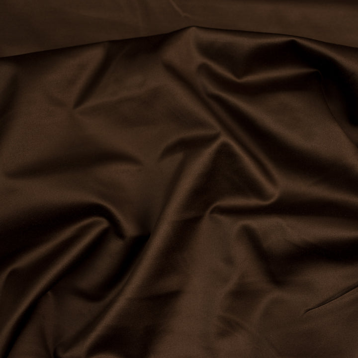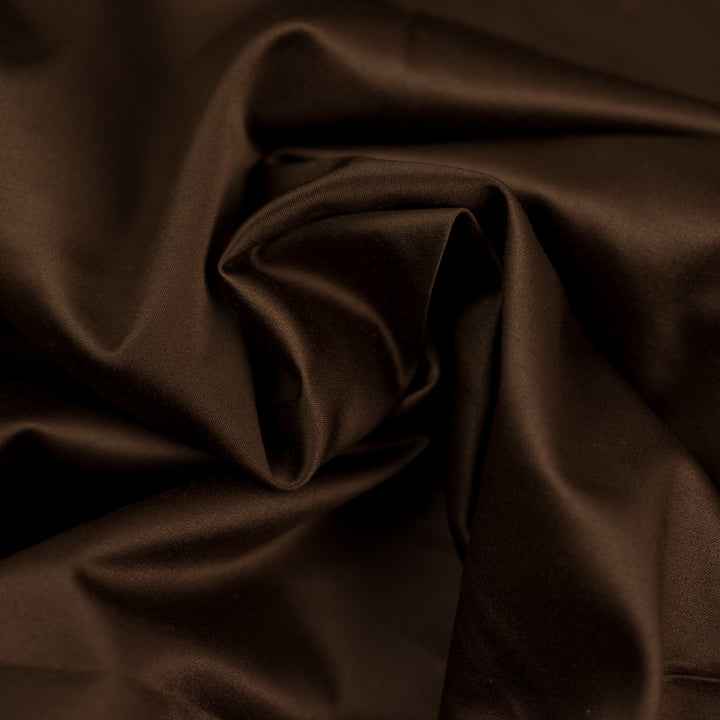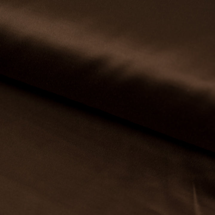 Könnyű, rugalmas szatén csokoládébarna színben, szélesség 150 cm, 95% poliészter, 5% elasztán