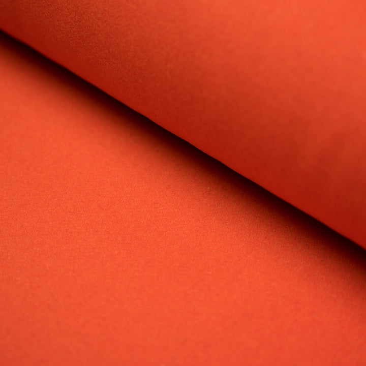 Sűrű és finom textúrája minden kreatív projektnek egy kis finomságot ad, míg élénk narancssárga színe minden teret és ruhát felvidít. A szövet könnyen kezelhető és sokoldalú, tökéletes egyensúlyt biztosít az esztétika és a funkcionalitás között.