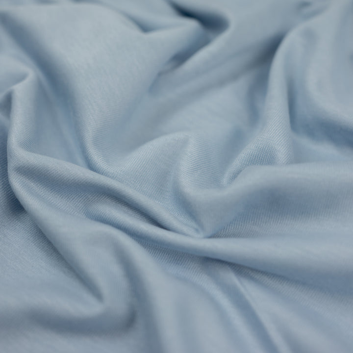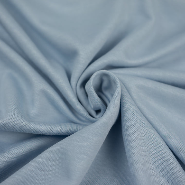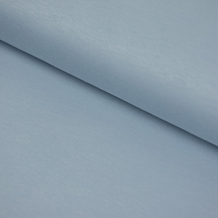 A vékony, kék-szürke pamut elasztánnal egy kissé átlátszó anyag, amely lélegző és kényelmes, így ideális azok számára, akik érzékenyek a szintetikus anyagokra vagy a gyapjúra. Ez a rugalmas, kellemes tapintású szövet puha, könnyen kezelhető, megtartja alakját és kiváló tartósságot biztosít. Magas hőmérsékletet is jól bír, de a zsugorodás elkerülése érdekében 30 fokos mosást javaslunk. Alkalmas fehérneműk, például pólók, melltartók vagy bikini készítéséhez, valamint különböző ruhadarabok bélésének pótlására.
