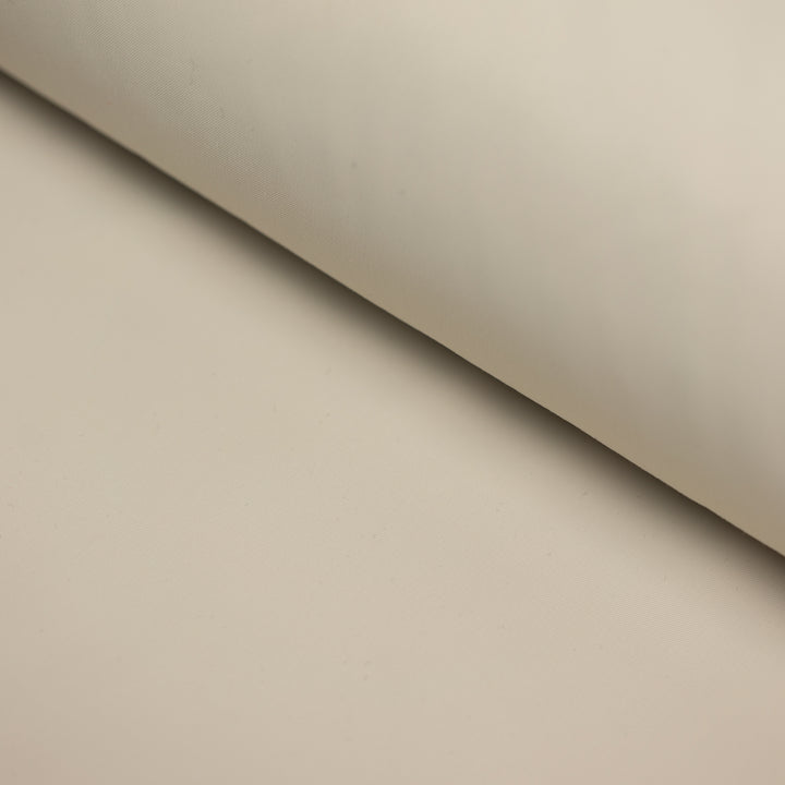 Vékony rugalmas szövet, 100% poliészter, világos bézs színű, szélesség 145 cm